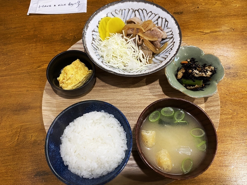 定食には、生姜焼き定食・筑前煮定食・ホッケ定食がありましたが、「生姜焼き定食」を注文しました。