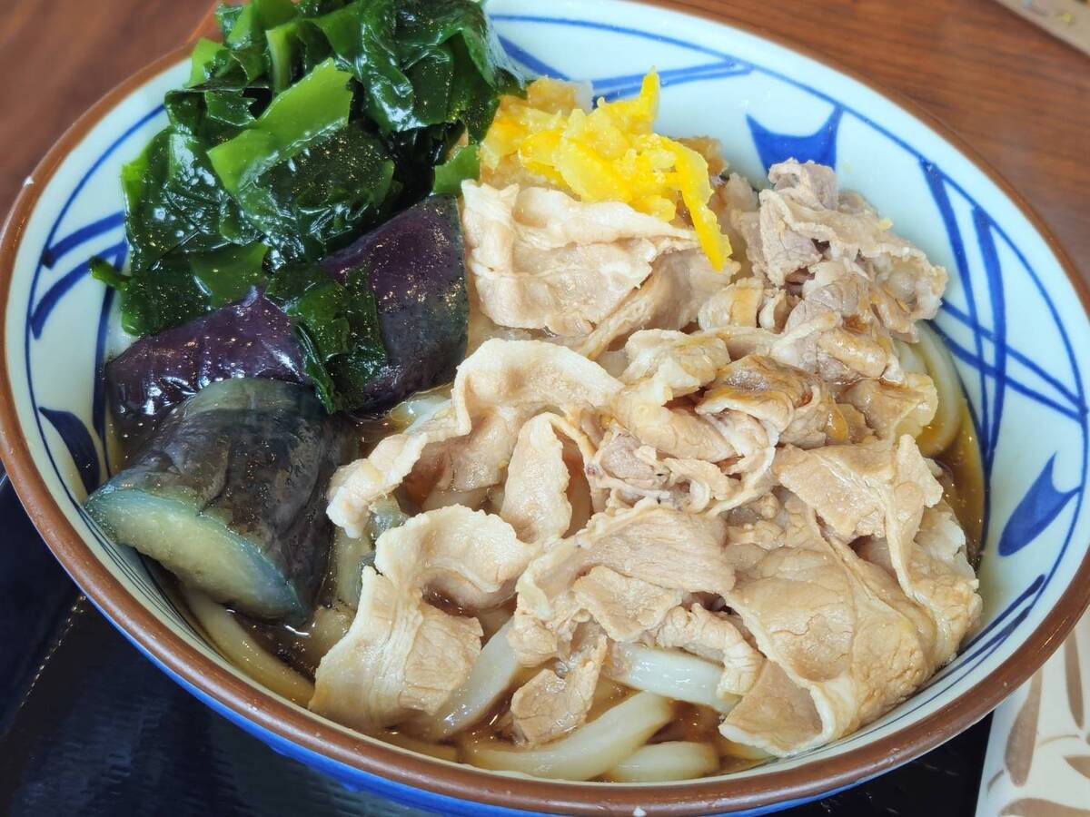 たっぷりの豚肉、ナスの煮びたし、大根おろし、柚子がのった夏限定のメニュー。