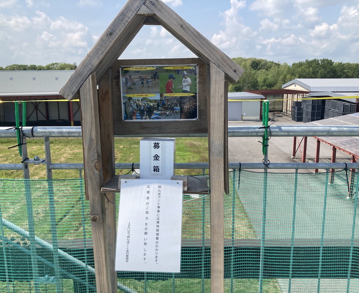 田んぼアートの維持管理には、多くの手間と費用がかかります。会場には募金箱が設置されており、地域への応援としてぜひご協力を。