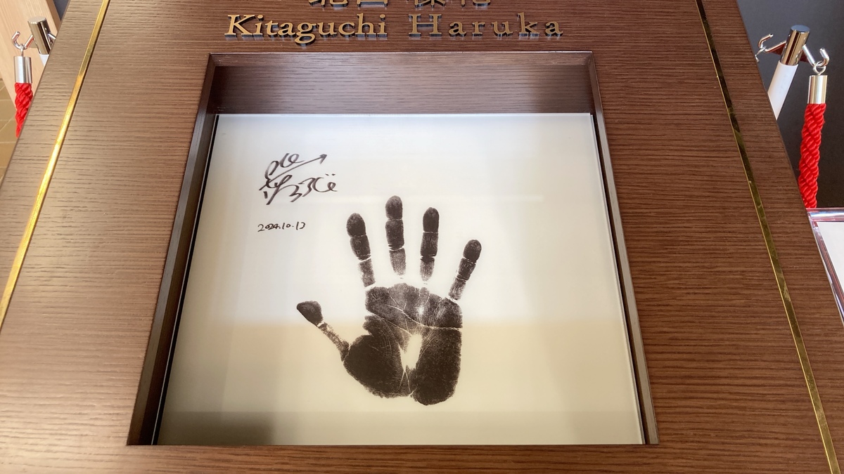 旭川市役所総合庁舎の1階ロビーには、北口選手のサイン入りユニフォームと手形が展示されています。手をかざすとライトが点灯する仕掛けがあり、実際に金メダルを勝ち取った右手の手形に触れることができます。思わずご利益を願ってしまうかも?