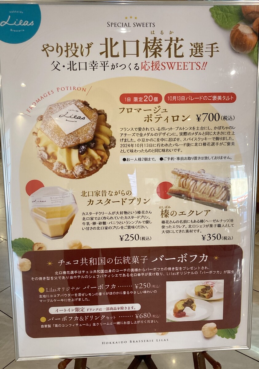 市役所から徒歩10分ほどの場所にある「アートホテル旭川」。その1階にある「北海道ブラッスリーリラ」では、北口選手のお父様がパティシエを務めており、北口選手の応援スイーツを販売中です。