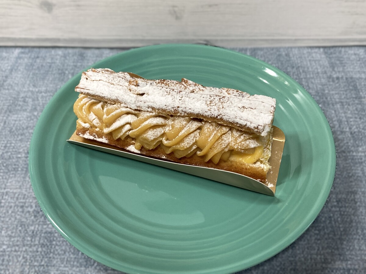 榛花さんの「榛」という字にちなんで作られたお菓子で「榛」=ヘーゼルナッツのエクレアです。こちらもナッツが香ばしくクリームがとても美味しかったです。