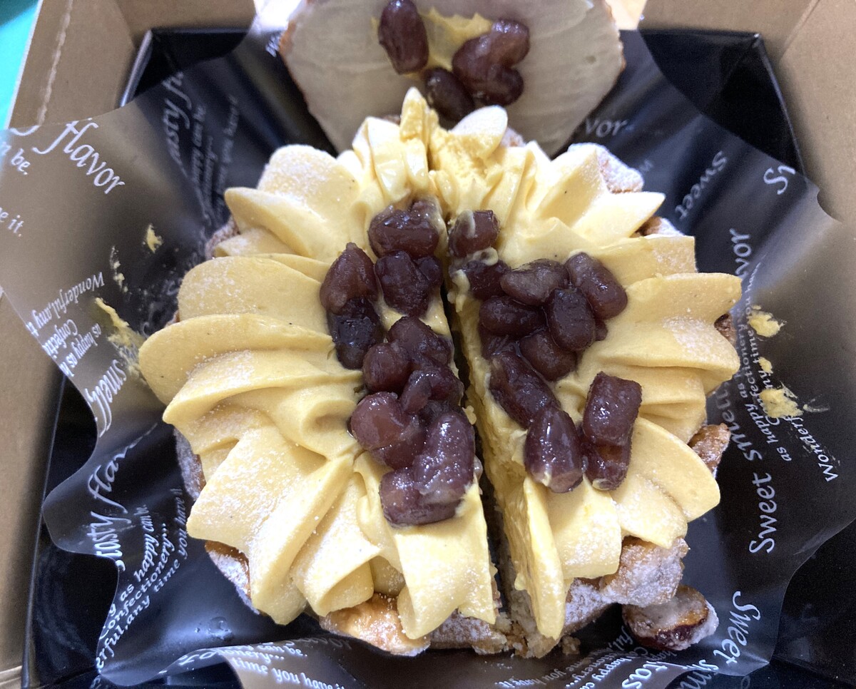 2024年パリ・オリンピックにちなんで、フランスの伝統菓子「ガレット・ブルトンヌ」を土台に、上にはかぼちゃのレアチーズクリームをたっぷり重ね、小豆のかのこをサンド。さらに、トップにはスパイスクッキーが添えられています。