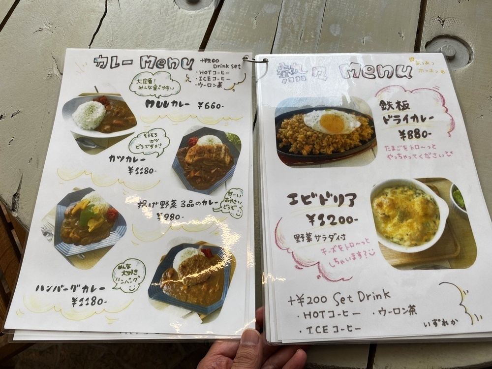 メニューには、数量限定のランチセットの他に、カレーライスやドリア、パスタ、おむすびのセットなどがありました。