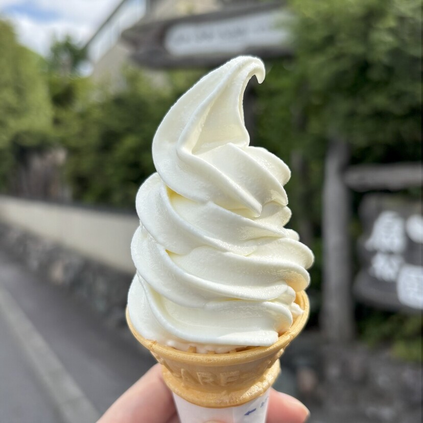 なぁんて思いながらひと口食べてみると滑らかでミルク感が濃厚。甘さもちょうどよく美味しいソフトでした。