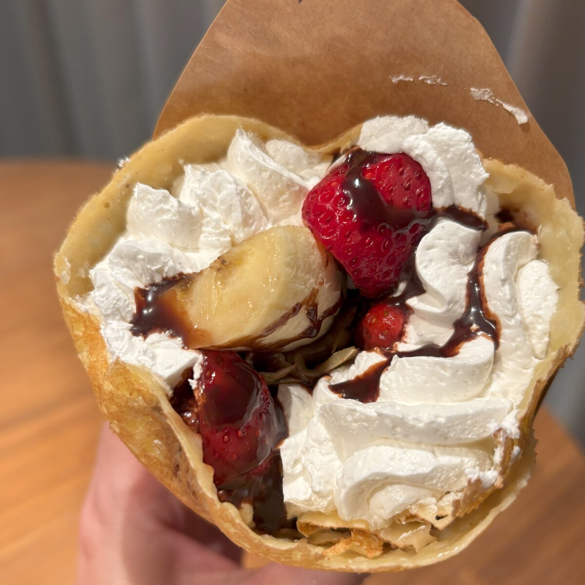 もらった瞬間に、わぁっ!!ボリューミー!!って嬉しくなっちゃうのが、かとうクレープさんのクレープ♪