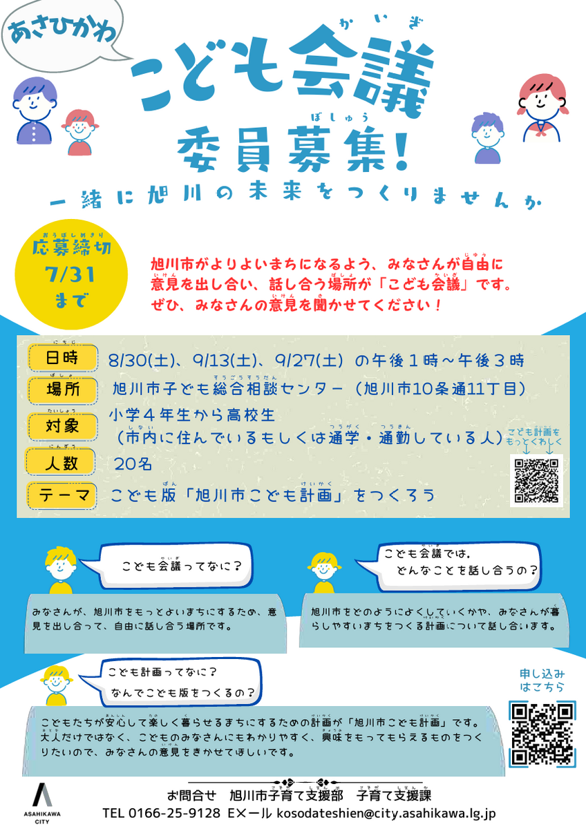 2025年7月31日(木)まで、旭川市ではこども会議委員を募集しています。