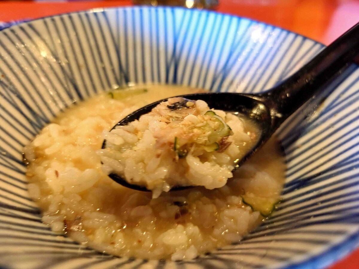 ご飯がおかわり出来るとの事で、〆は冷や汁にダイレクトイン!