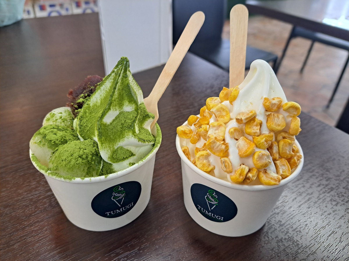 こちらの生ソフトクリーム専門店「TUMUGI」があります。