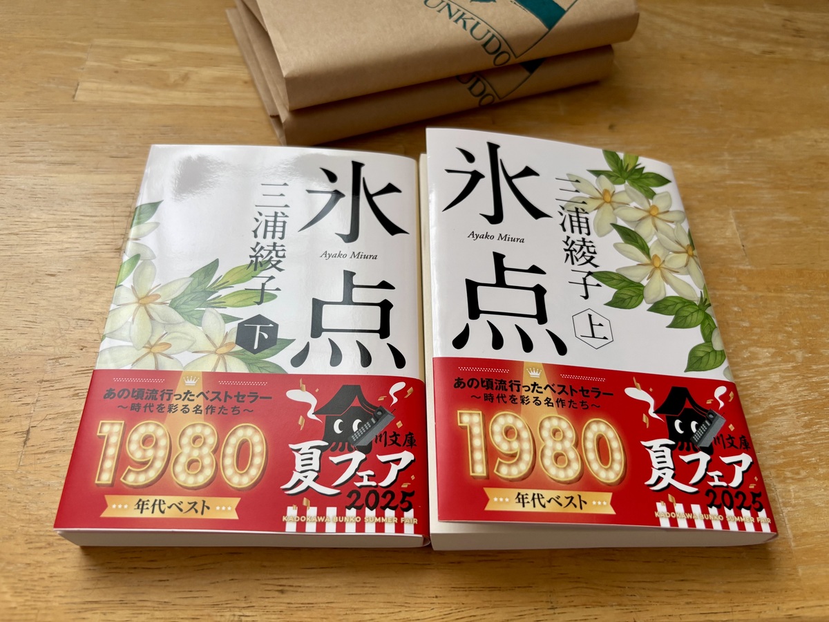 高校生のとき、勉強の息抜きとして図書館で読んで以来、久しぶりの『氷点』でした(上・下各税込¥704)。