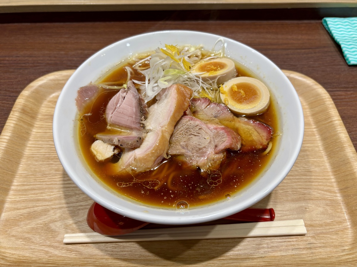 香ばしいチャーシューや甘い味付けの味玉、添えられた柚子や白髪ネギもいいアクセントとなっており、とても上品な一杯を味わうことができました♪