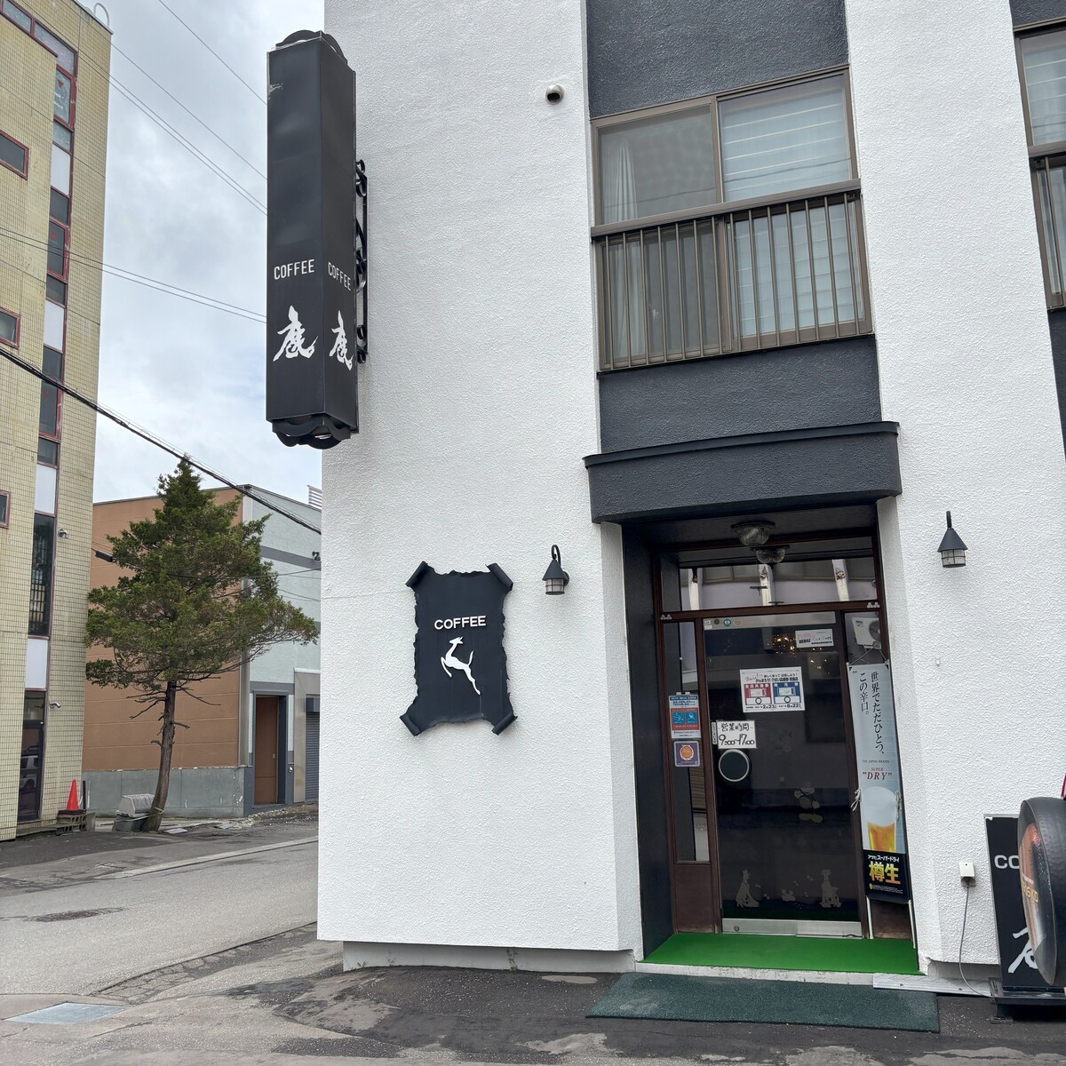 まず最初は、美唄の老舗の喫茶店『鹿』さんです。美唄駅からは徒歩5分ほどのところにあり、今回は車で行ったので目の前の無料駐車場へ停めました。