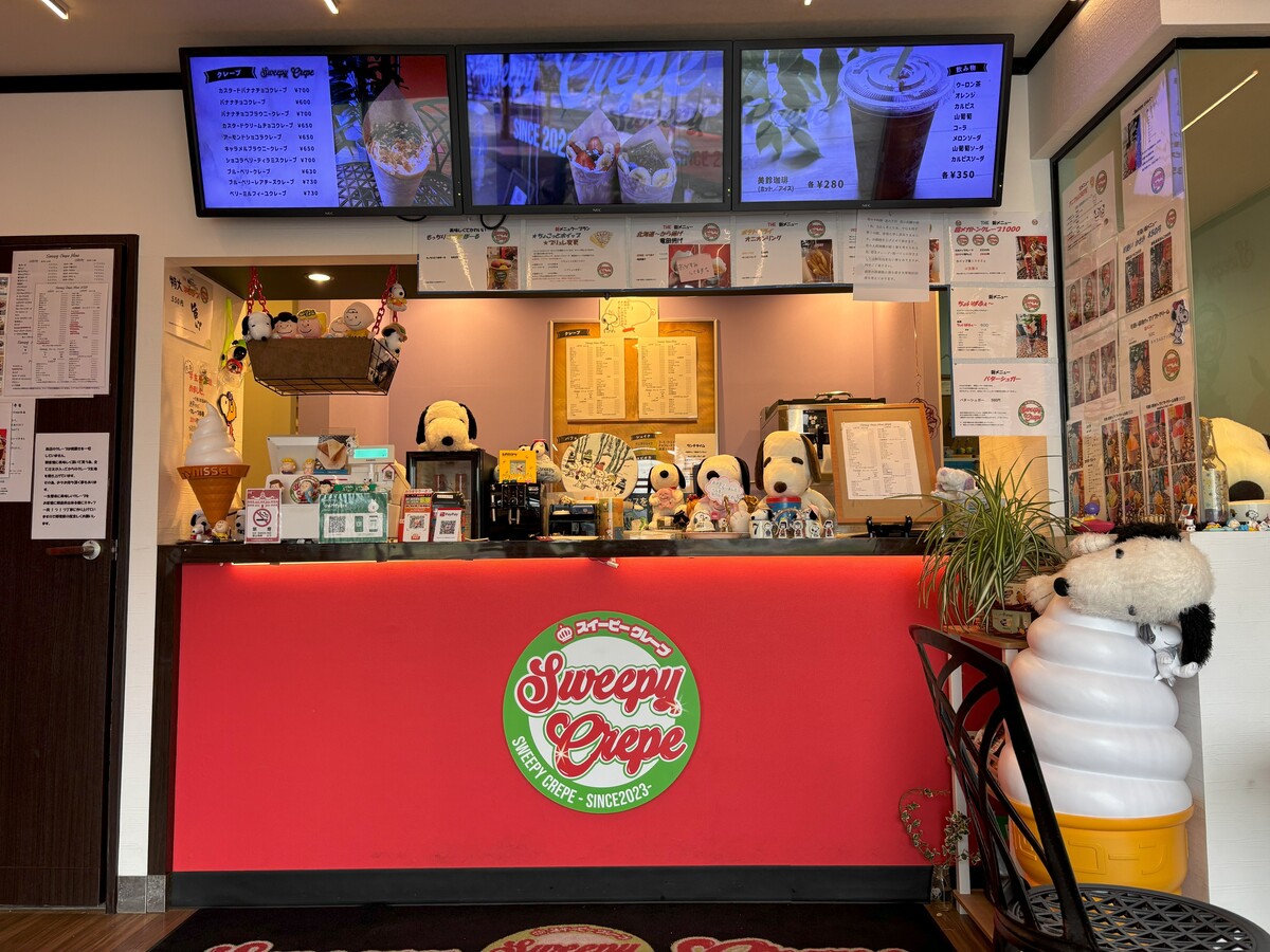 スーパーやドラックストアの一角にあるんですが、赤を基調としたポップな店内ではイートインもでき、スヌーピーがたくさん!!