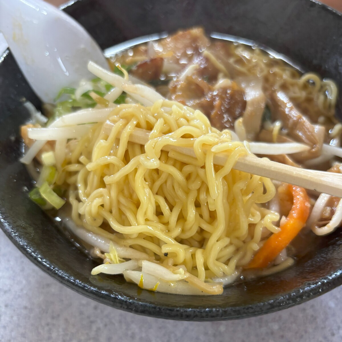 食べてみてびっくり!!甘じょっぱいホルモンはすごくやわらかく、芯までしっかり味付けされてて臭みも気にならなく、食べやすいし濃厚なコクのある味噌スープに、麺は中細のちぢれ麺。きくらげやシャキッとした野菜が入っていてこれも絶妙な火加減で食感もよかったです。