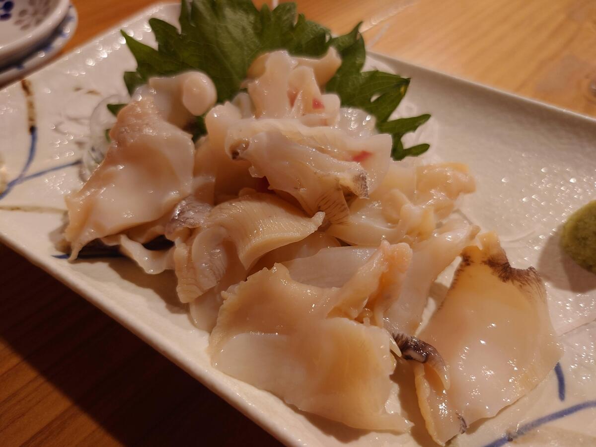 アジ刺(1,200円)と白つぶ(880円)