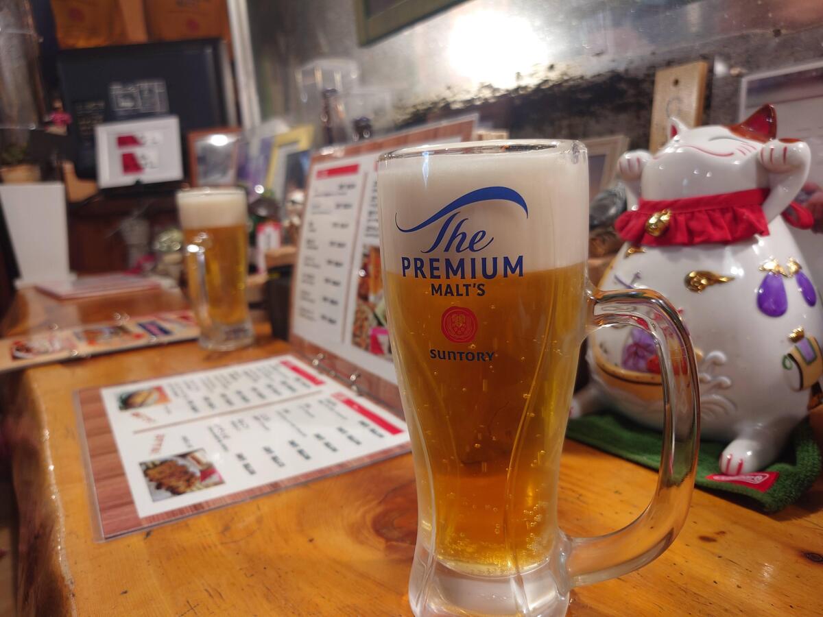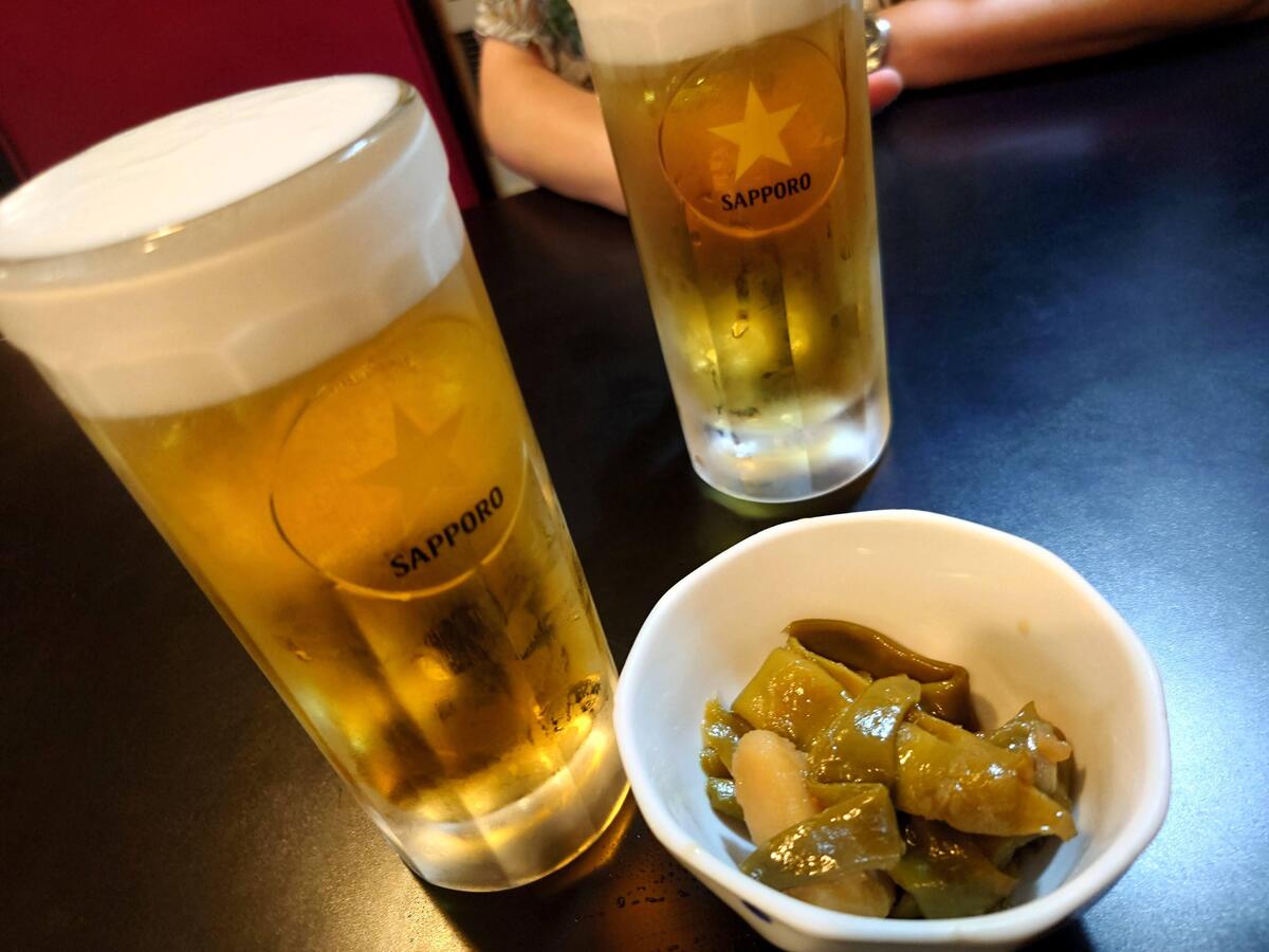 ビールはサッポロ生ビール。600円。