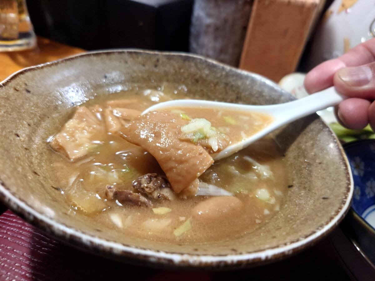 味噌味のもつ煮♪これが汁たっぷりの旨いやつ!