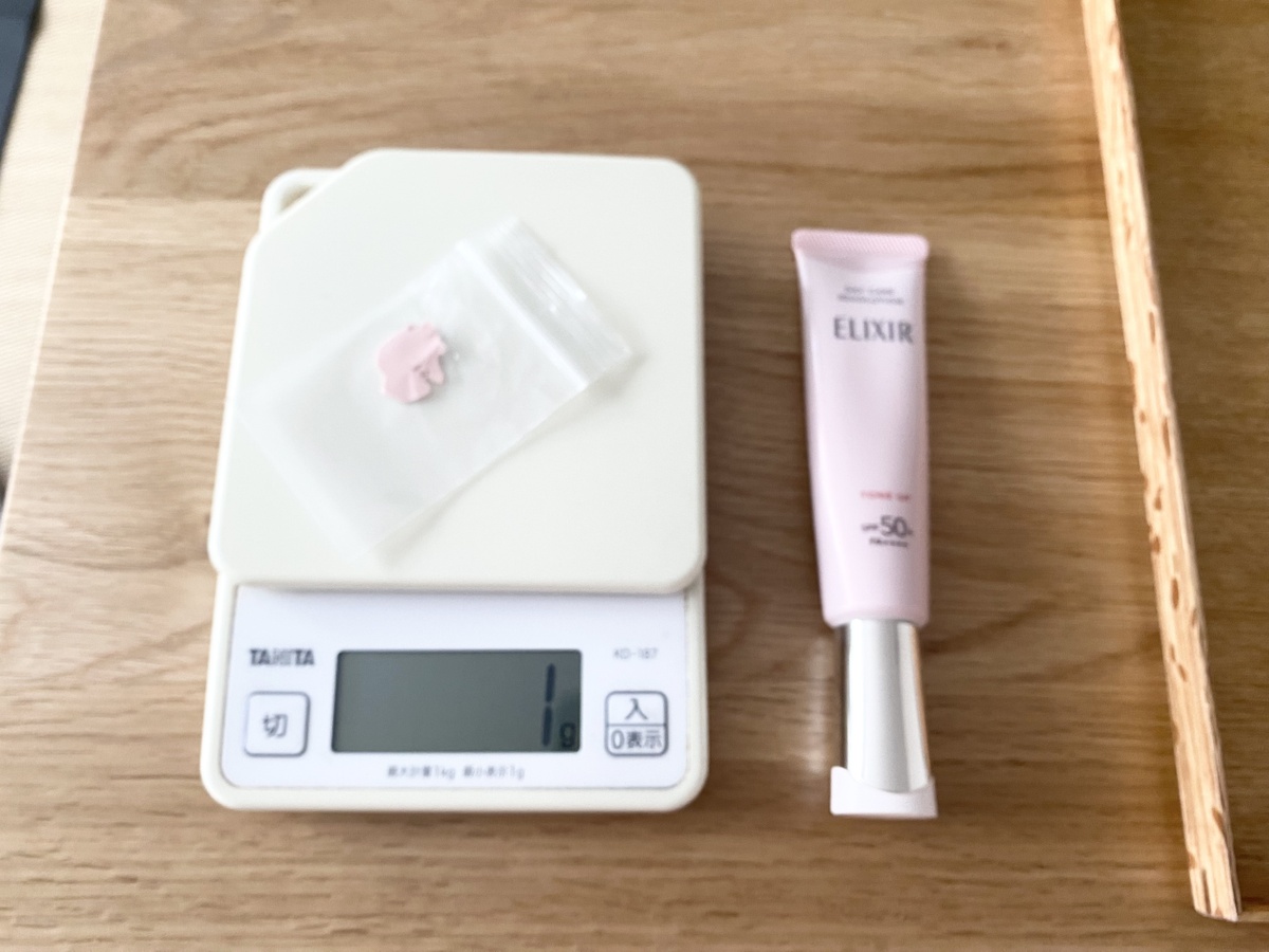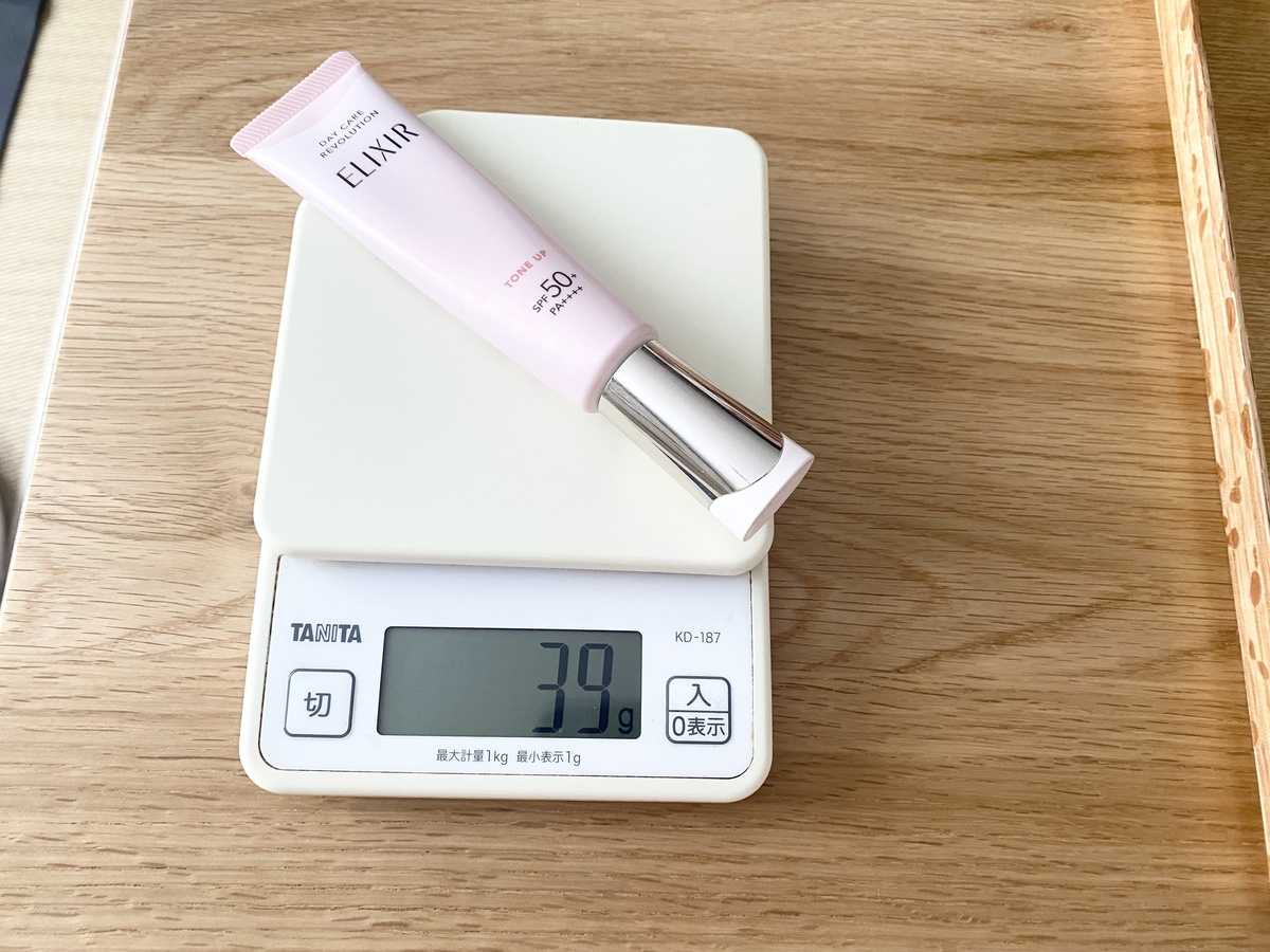 例えば、化粧下地。本体のまま持っていくと重さは、39グラム。