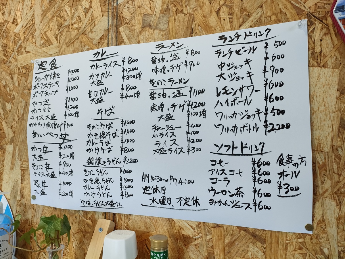 メニュー表は手書きのものが壁に貼ってあるスタイルで、親しみがあり良い感じですね。