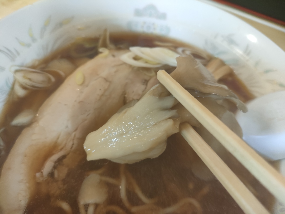 醤油ベースのスープと舞茸の相性は結構良く、きのこ汁とはまた違った「味の絡まり」があり風味がとても良いですね。