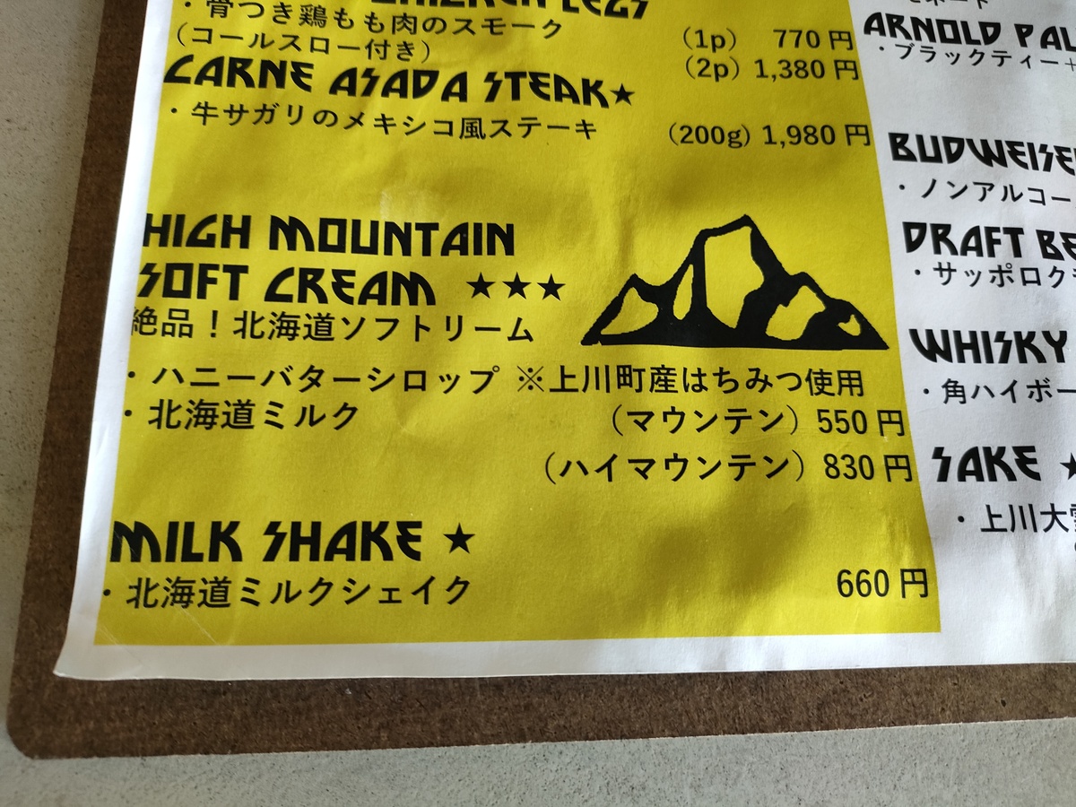 お目当てはこちらのメニュー表にある「北海道ソフトクリーム」550円(税込)です。