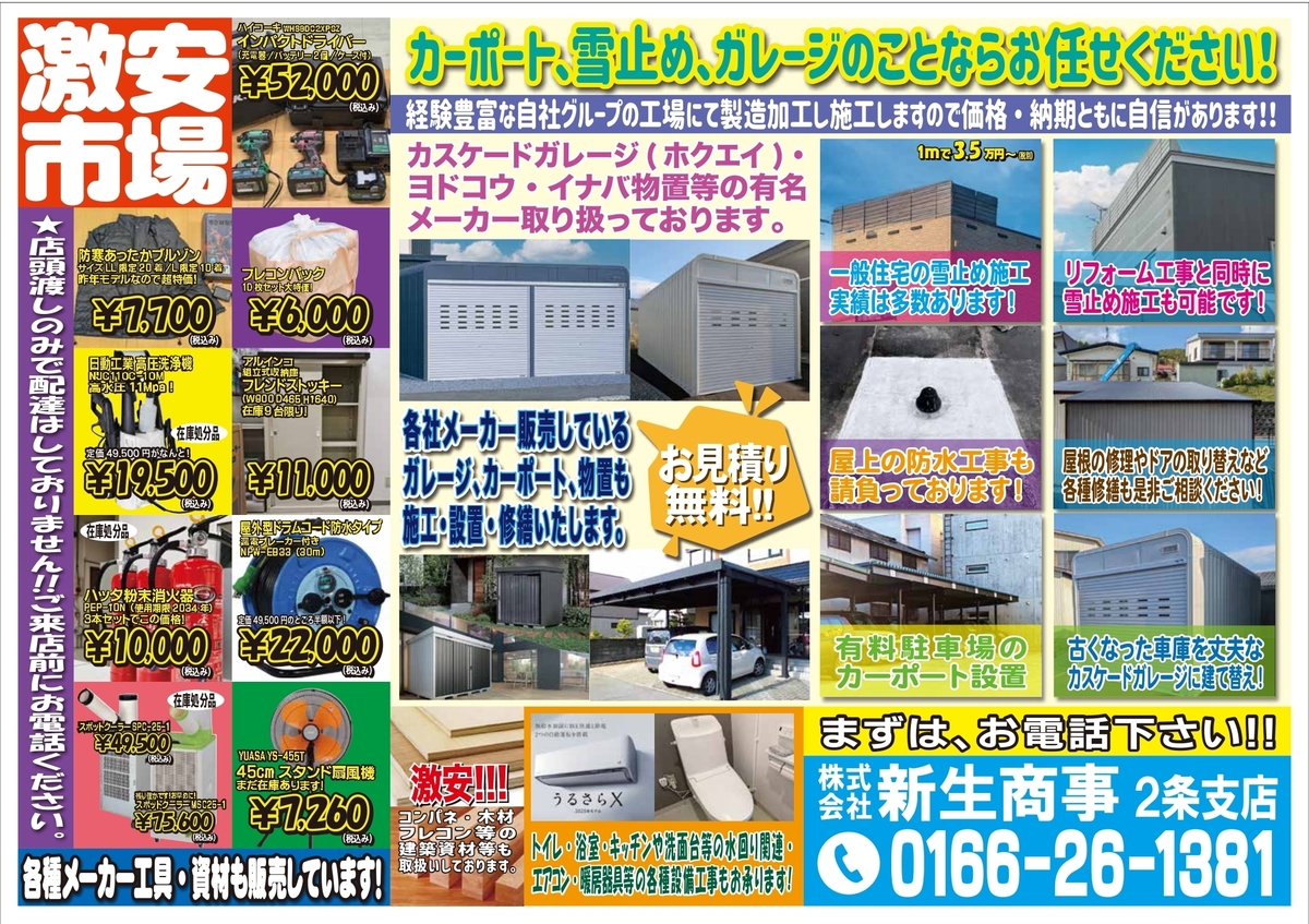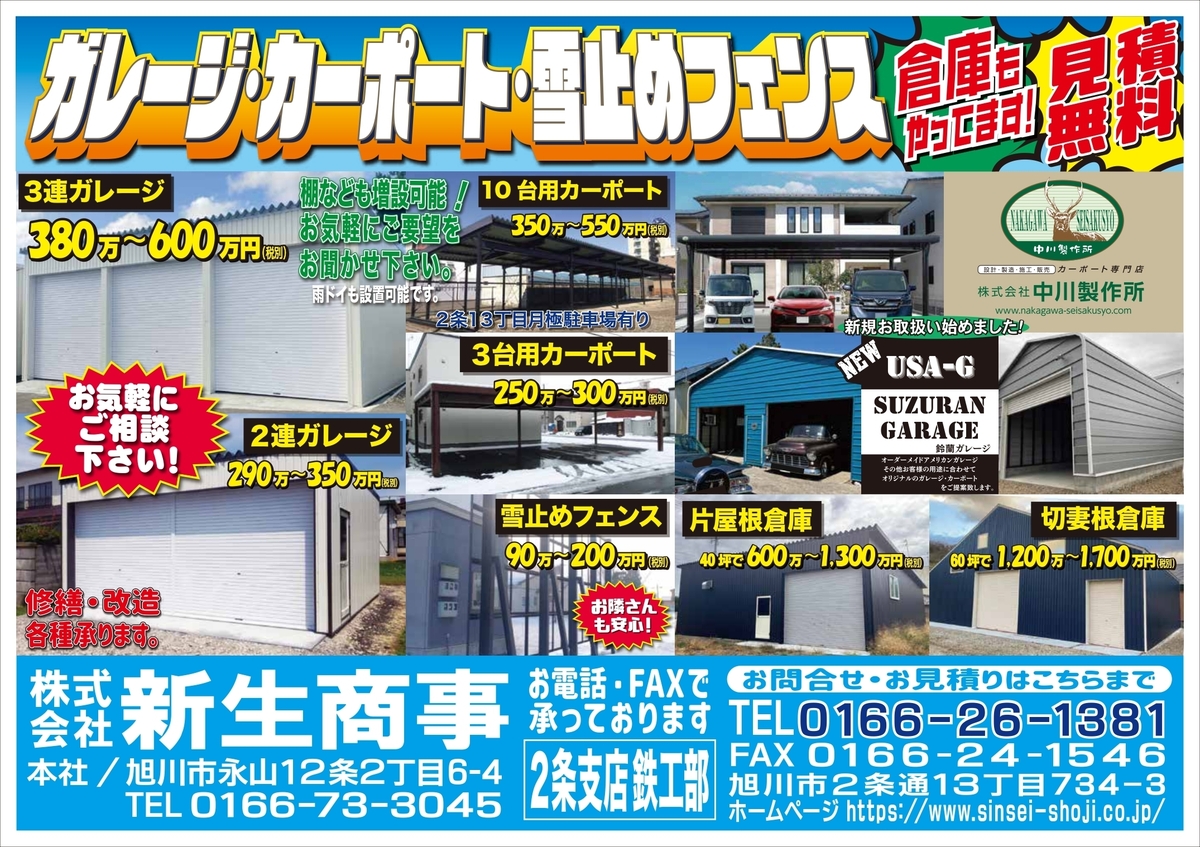 そして、激安市場を運営する新生商事では、各社メーカーの雪止めフェンス、倉庫、ガレージ、カーポートの施工・設置も可能です。