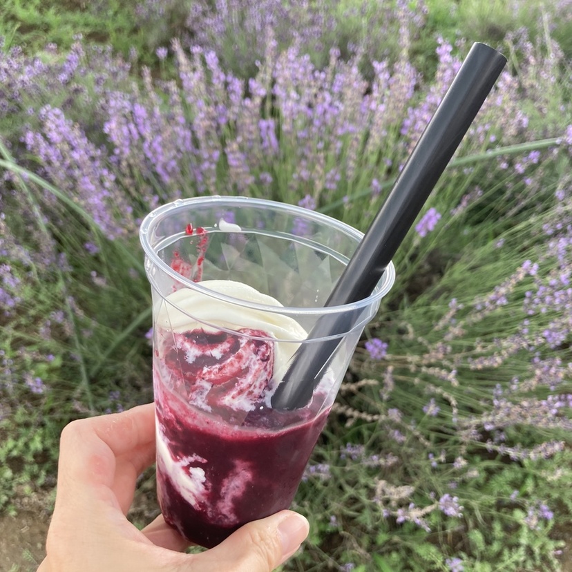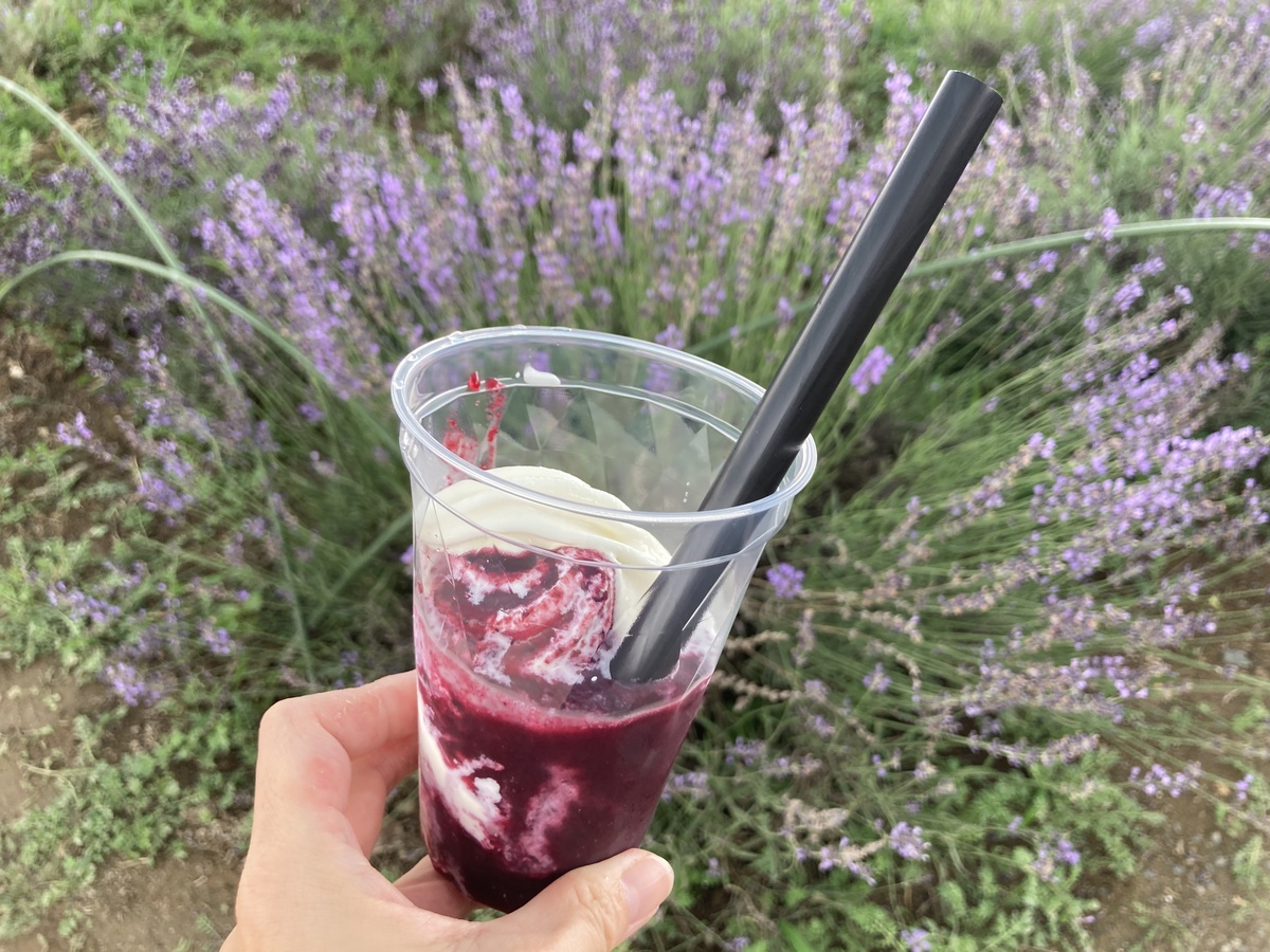 売店では、ブルーベリーとアロニアを使った期間限定シェイクが登場中。甘いベリーとジャージー牛乳ソフトクリームの甘みが相まって、夏にぴったりのさっぱり感。