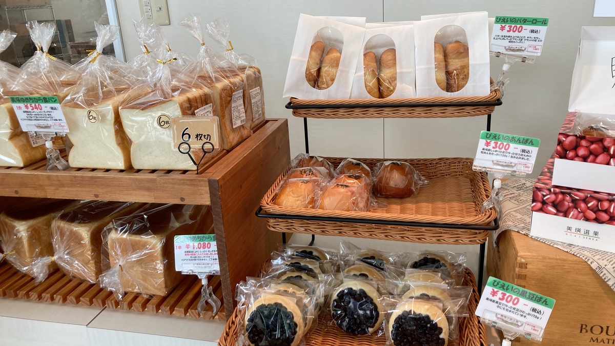 国道237号線沿い、美瑛の特産品が買える「美瑛選果」のお隣にある「美瑛小麦工房」は、美瑛産の小麦を使ったこだわりのパンが人気。休日には売り切れになってしまうほどですが、今回は平日の昼に訪れたため、種類豊富に並んでいました!