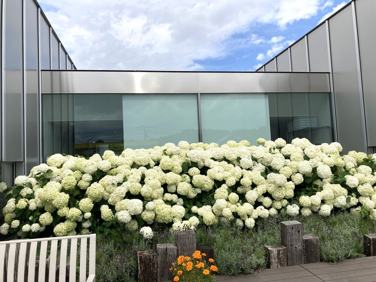 建物の前に咲いていた白いアナベルが満開で見頃でした。涼しげで可憐な花が、夏の空気をより一層心地よいものにしてくれます。美瑛らしい、自然との調和を感じる瞬間です。