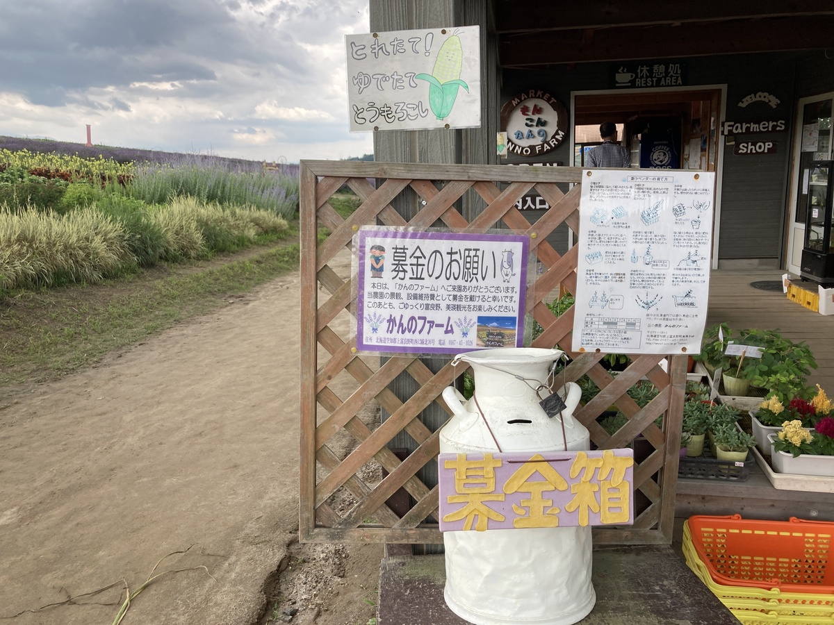 入園無料のかんのファームでは、園内の維持や花の管理のために募金箱が設けられています