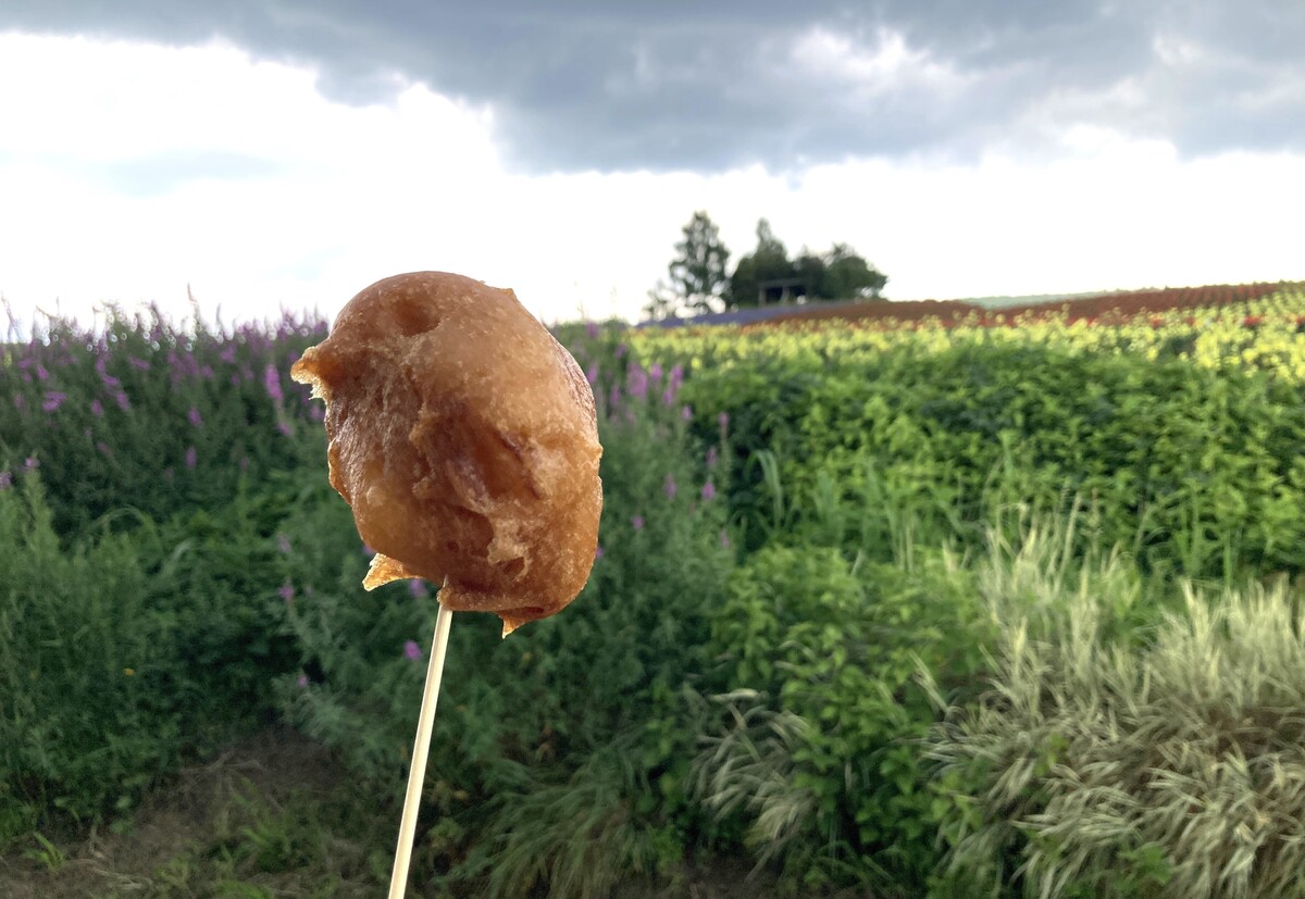 定番の北海道グルメ・あげいもは、かんのファーム産のじゃがいもを使用。小ぶりながらホクホクで、衣の甘さとじゃがいもの旨味がマッチ。シェイクと一緒に「花より団子」な休憩時間を過ごしました。