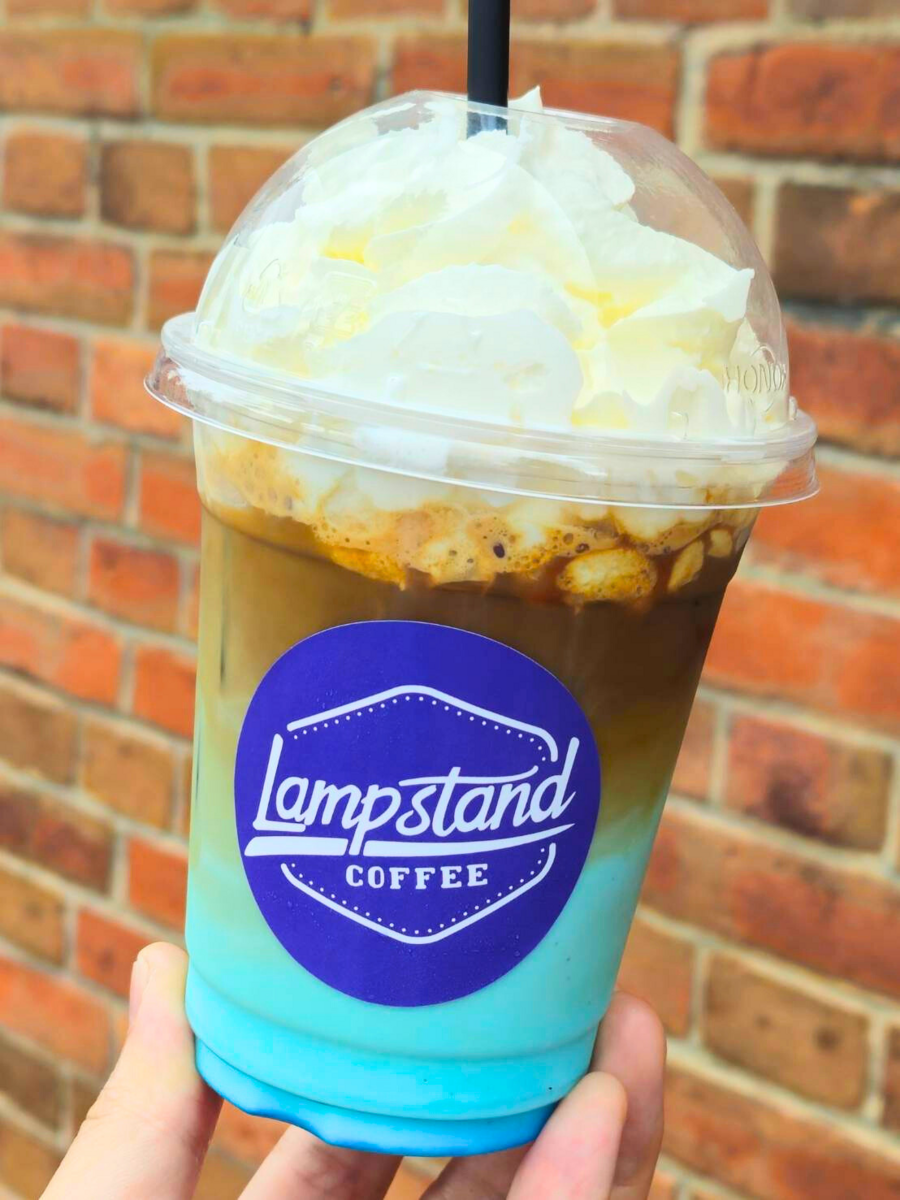 ご紹介するのは『ランプスタンドブルーラテ(税込745円)』。