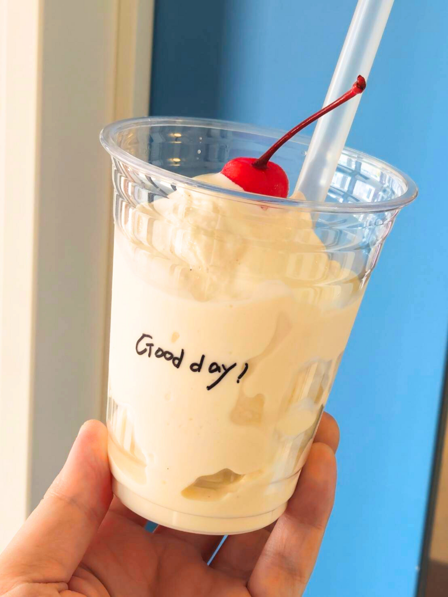 真っ白なシェイクの上にのったさくらんぼが可愛すぎる人気のメニュー。