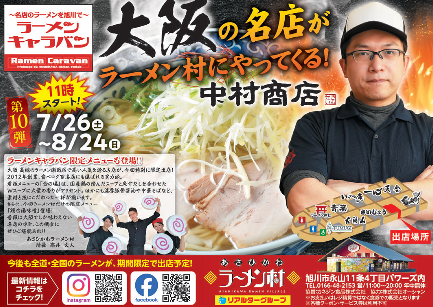 2025年7月26日(土)から8月24日(日)まで、あさひかわラーメン村に『中村商店』が出店します。