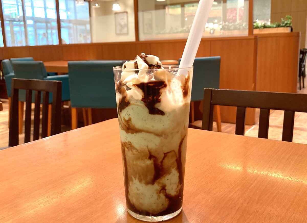ミントのスースー感とチョコチップとソースの甘さ、たっぷりのホイップが絶妙バランス!氷を砕いているので最後まで冷たく飲めます。