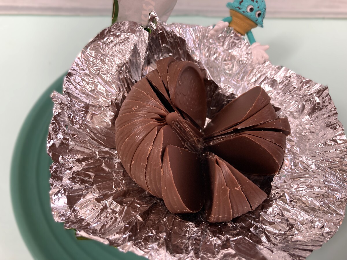 銀紙に包まれたまん丸なチョコの底を軽く叩いて、そっと開くと…