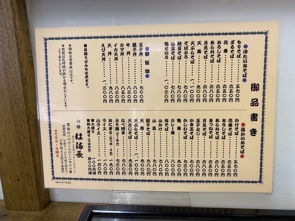「は満長」は、昭和4(1929)年創業の旭川を代表する老舗のおそば屋さん。サンロクにある「は満長 本店」と「は満長 末広店」は何度も利用したことがあるのに、六條支店はこの時が初訪問です。