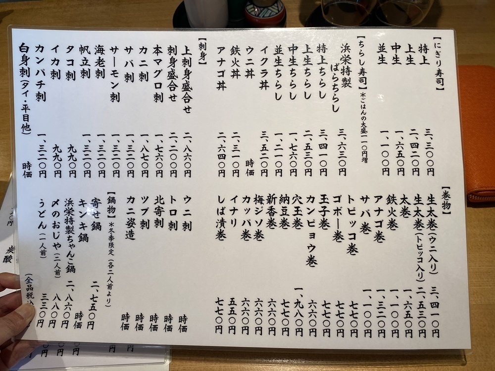 「浜栄」に来るのはこの時が2度目。以前は、平日限定のランチメニューがありましたがやめてしまったそうです。