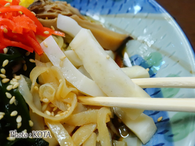 タレはお馴染みの中華風。酸っぱすぎず辛すぎずな、ちょっとまろやかタイプで食べやすい。