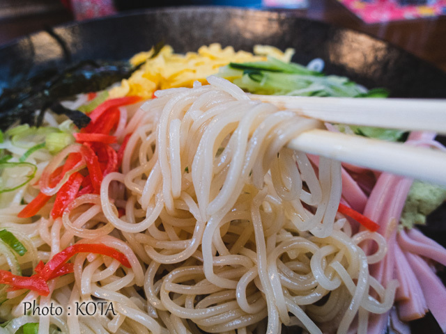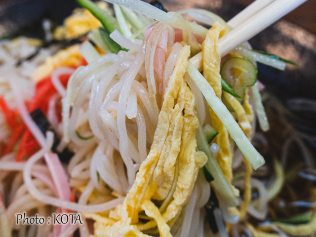 おおっ、なかなかゴージャス。一般的な冷やし中華に比べ、具材の種類がけっこう多い。