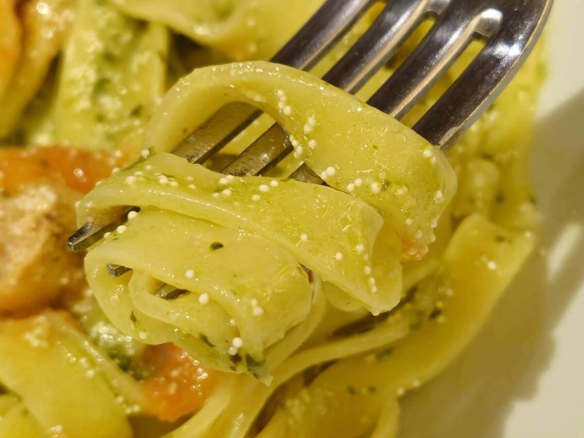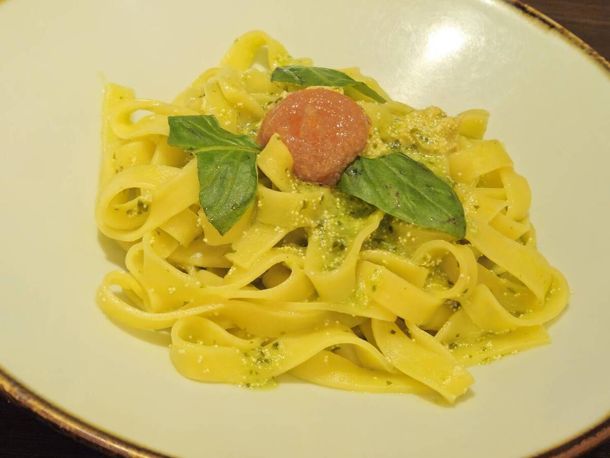ジェノベーゼの香りがしっかり感じられ、たらこ明太の食感がアクセントになります。