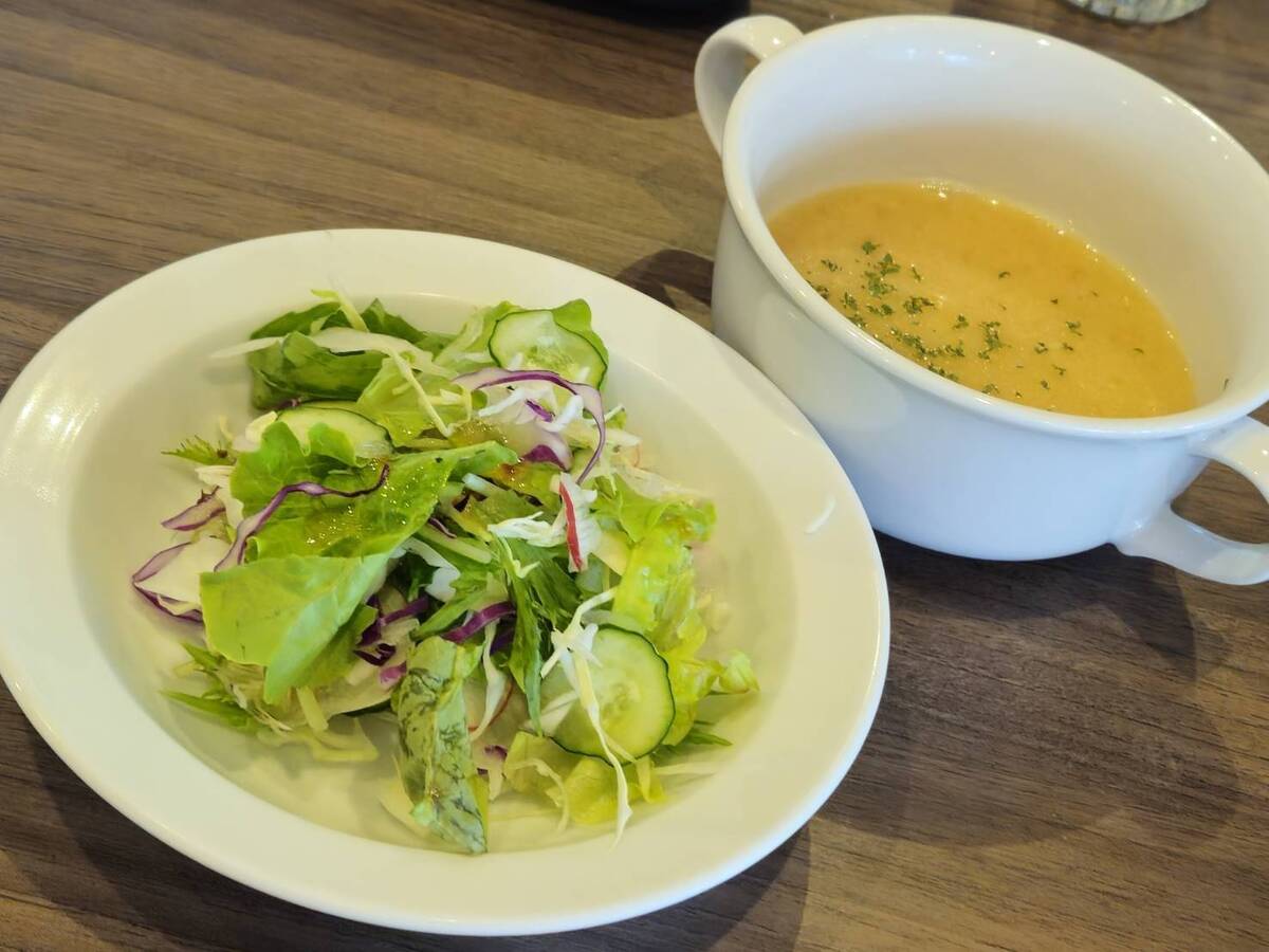 サラダのドレッシングは酸味が効いた爽やかな味わい。