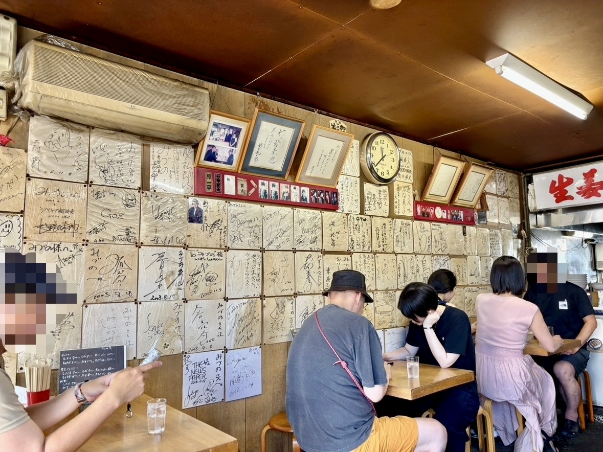 店内にはたくさんのサインが飾られており、計3台の扇風機もフル稼働しております(訪問時は8月です)。
