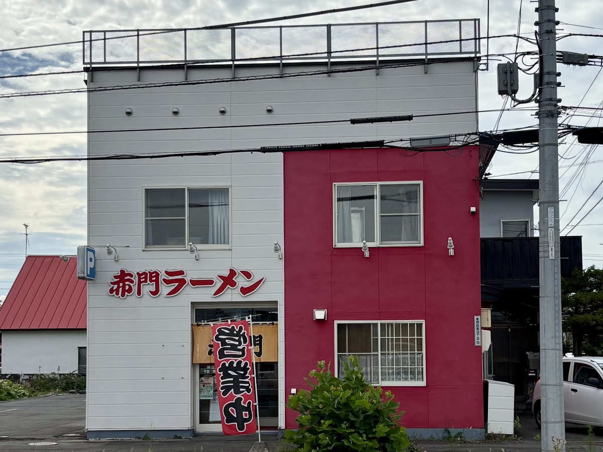 豊岡6条3丁目にある、1977年創業の「赤門ラーメン」。
