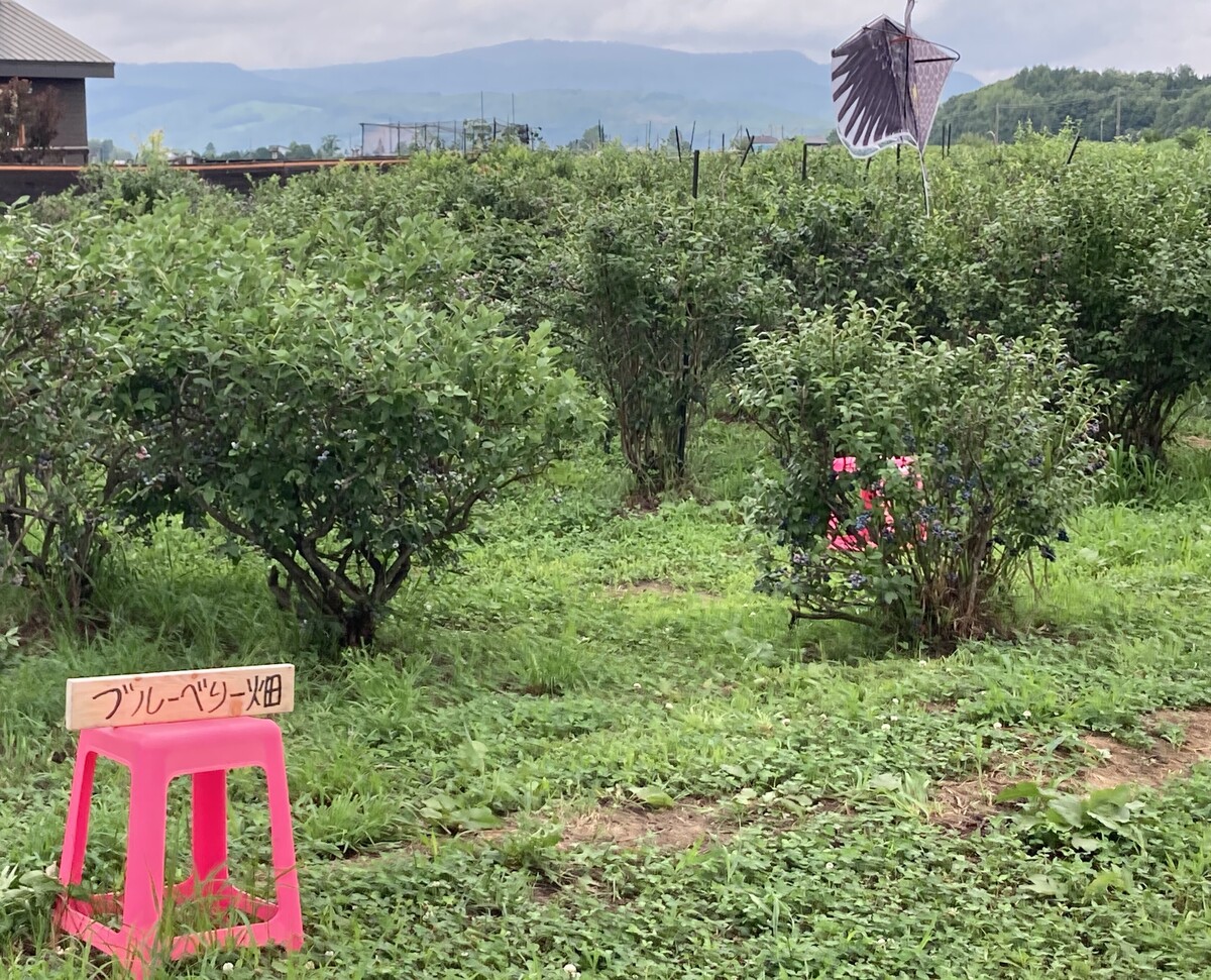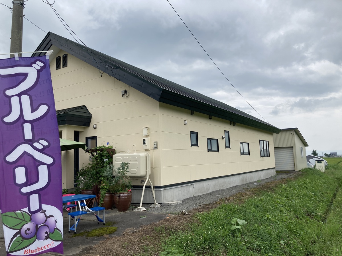 アクセスは、国道39号線を愛別方面に進み、バス停「当麻26丁目」を過ぎたら右折。道なりに進むとブルーベリーののぼりとパラソルが目印です。踏切のすぐ手前にあります。