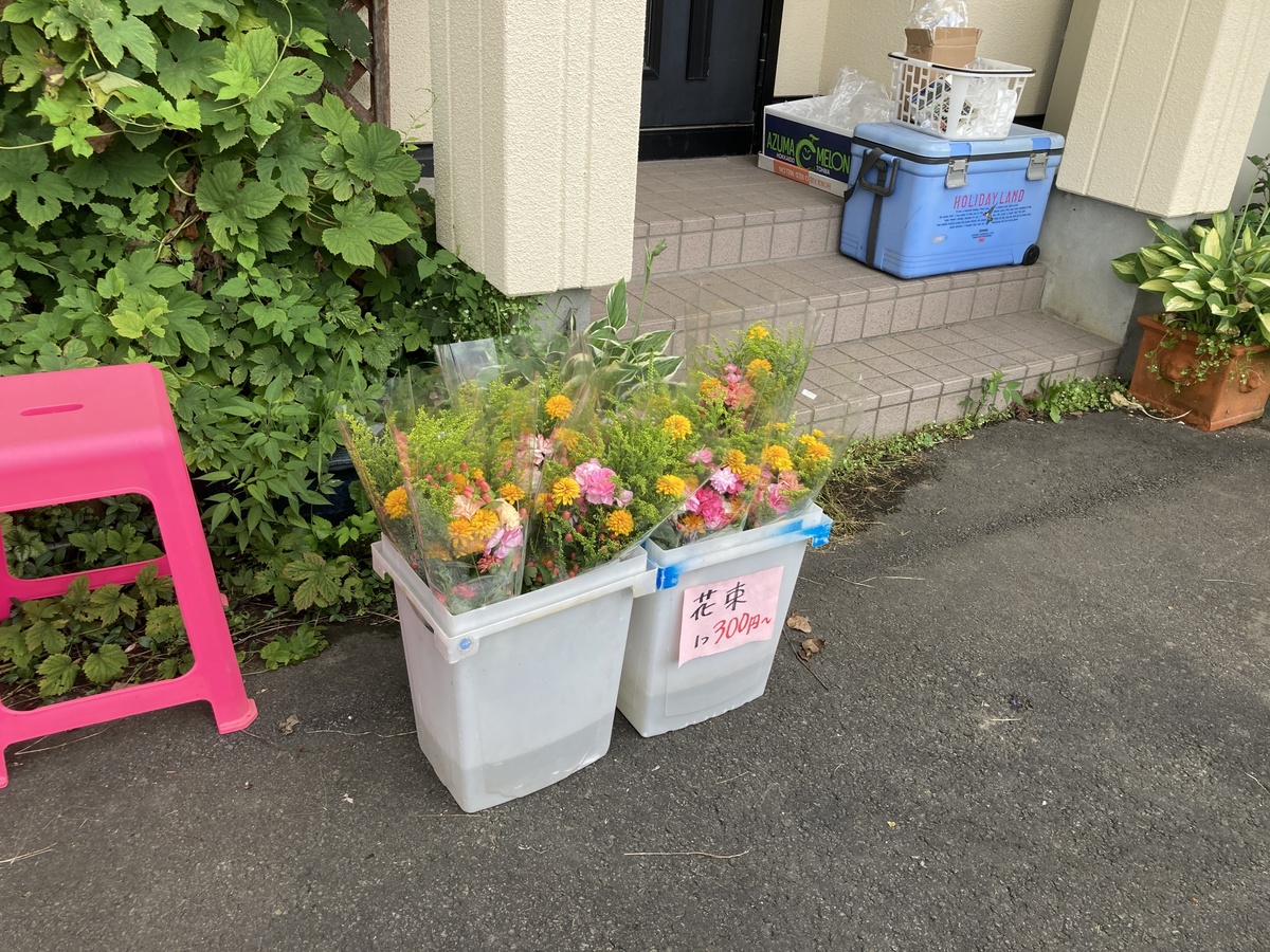 また、ブルーベリー狩りの時期限定で、建物前では新鮮な切り花(1束300円)も販売しています。