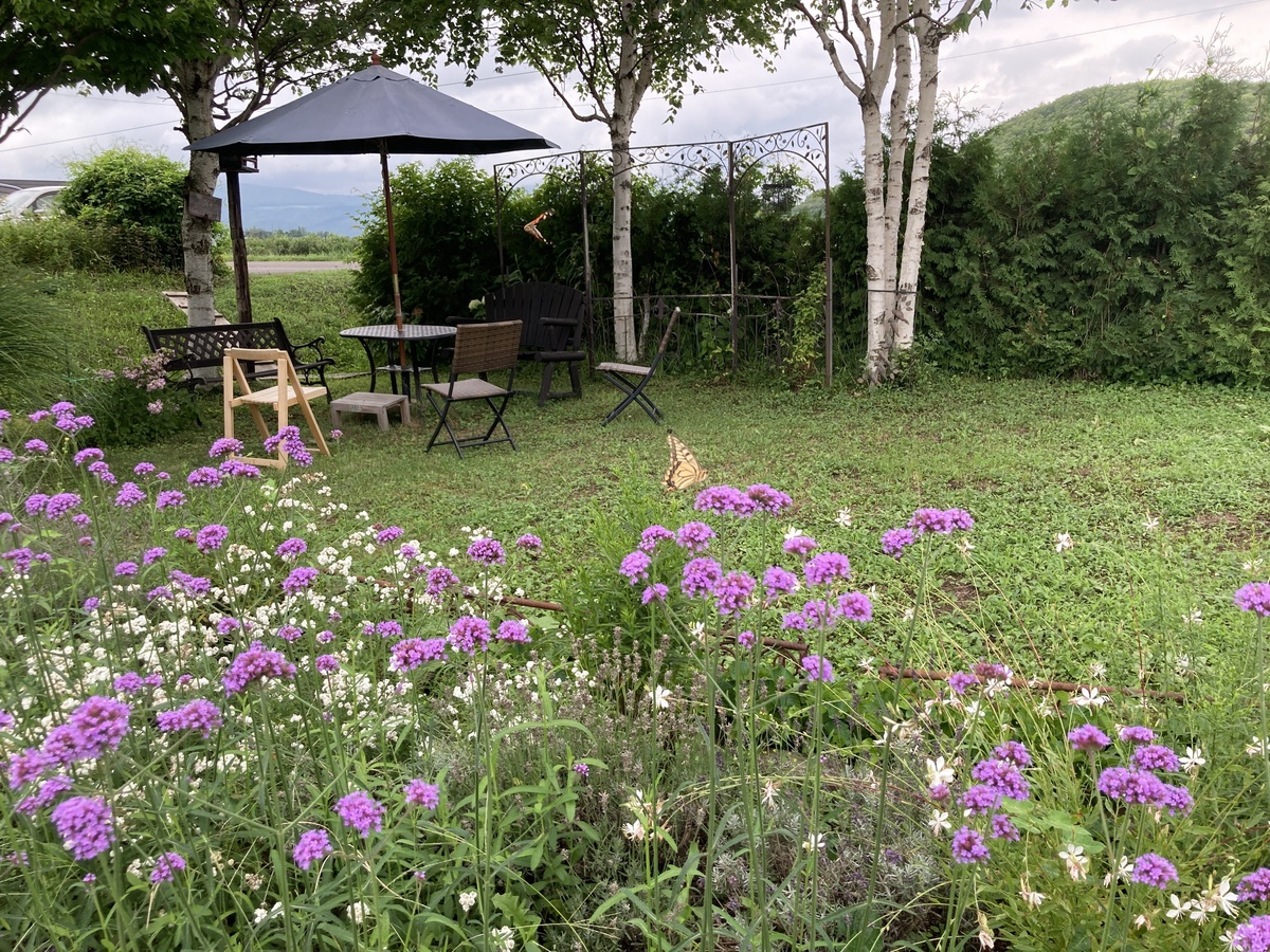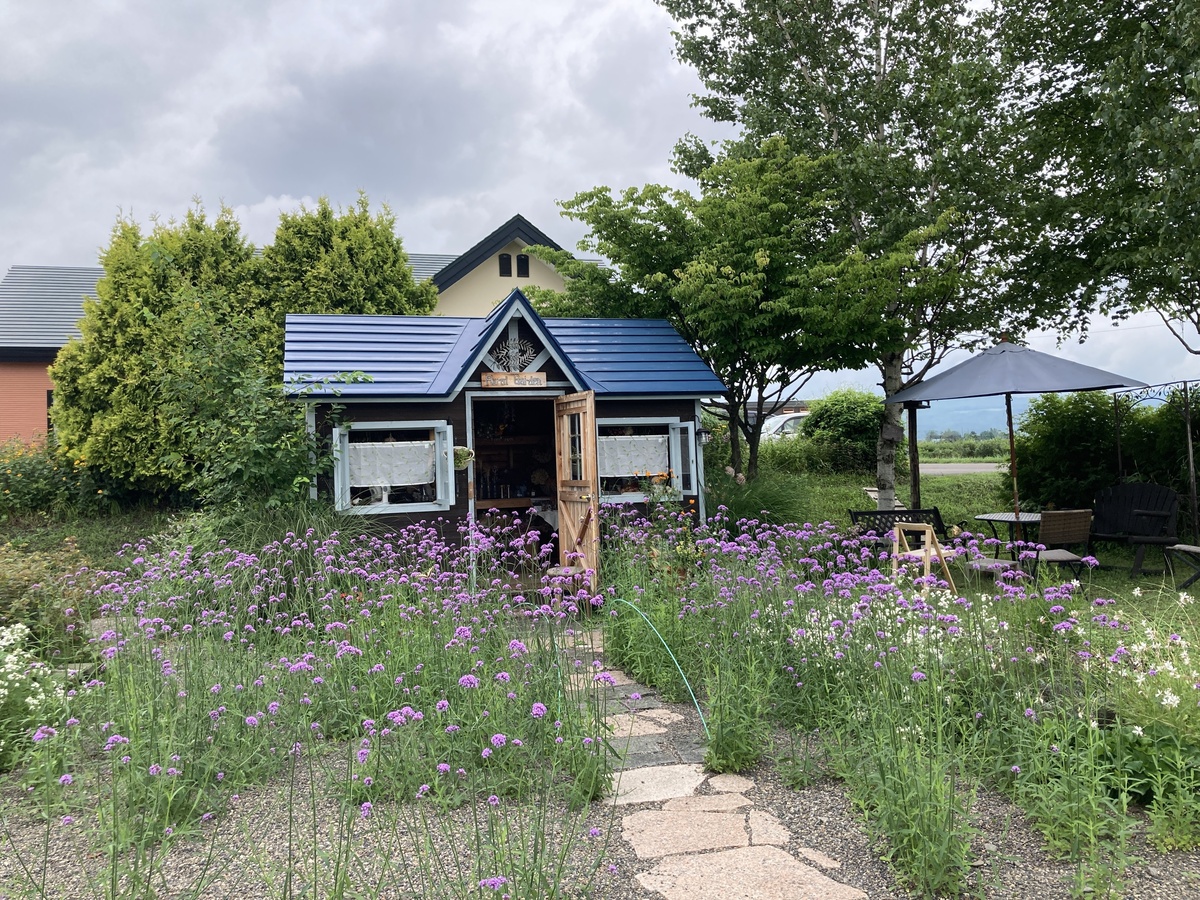 建物前に車を停めると、お花畑からオーナーさんが出てきてくれました。不在の場合は、お花畑の中を探してみてください。