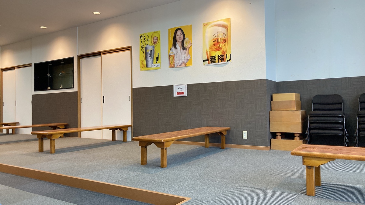 以前はエントランス右側がお食事処でしたが、現在は休憩室スペースで営業中。小上がりのゆったりとした空間です。