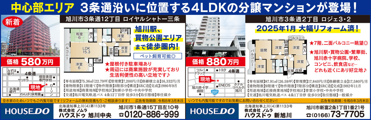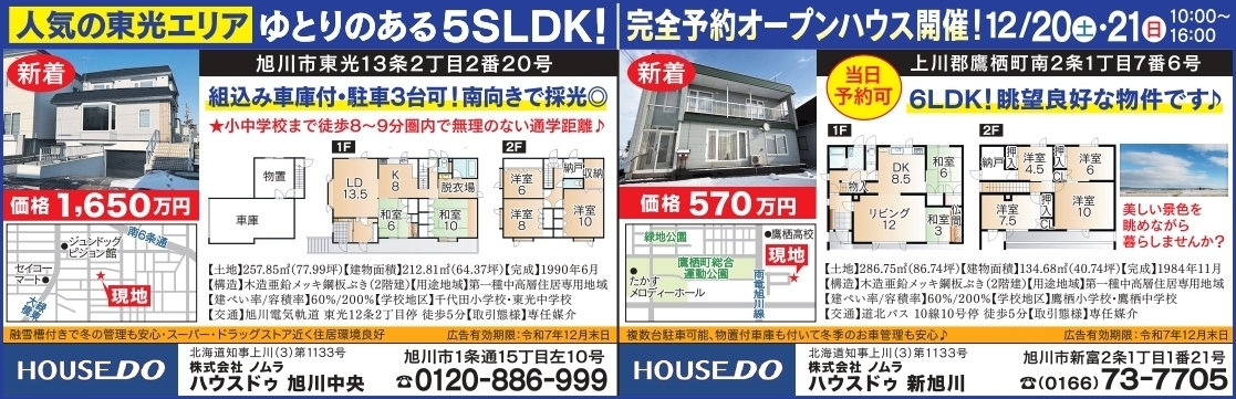 ※物件情報・オープンハウスに関するお問い合わせは、ハウスドゥ旭川中央・ハウスドゥ新旭川へご連絡ください。