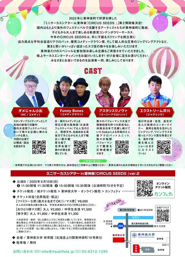 2025年8月10日(日)に東神楽大学で『ミニサーカスシアターin東神楽 CIRCUS SEEDS』が開催されます。